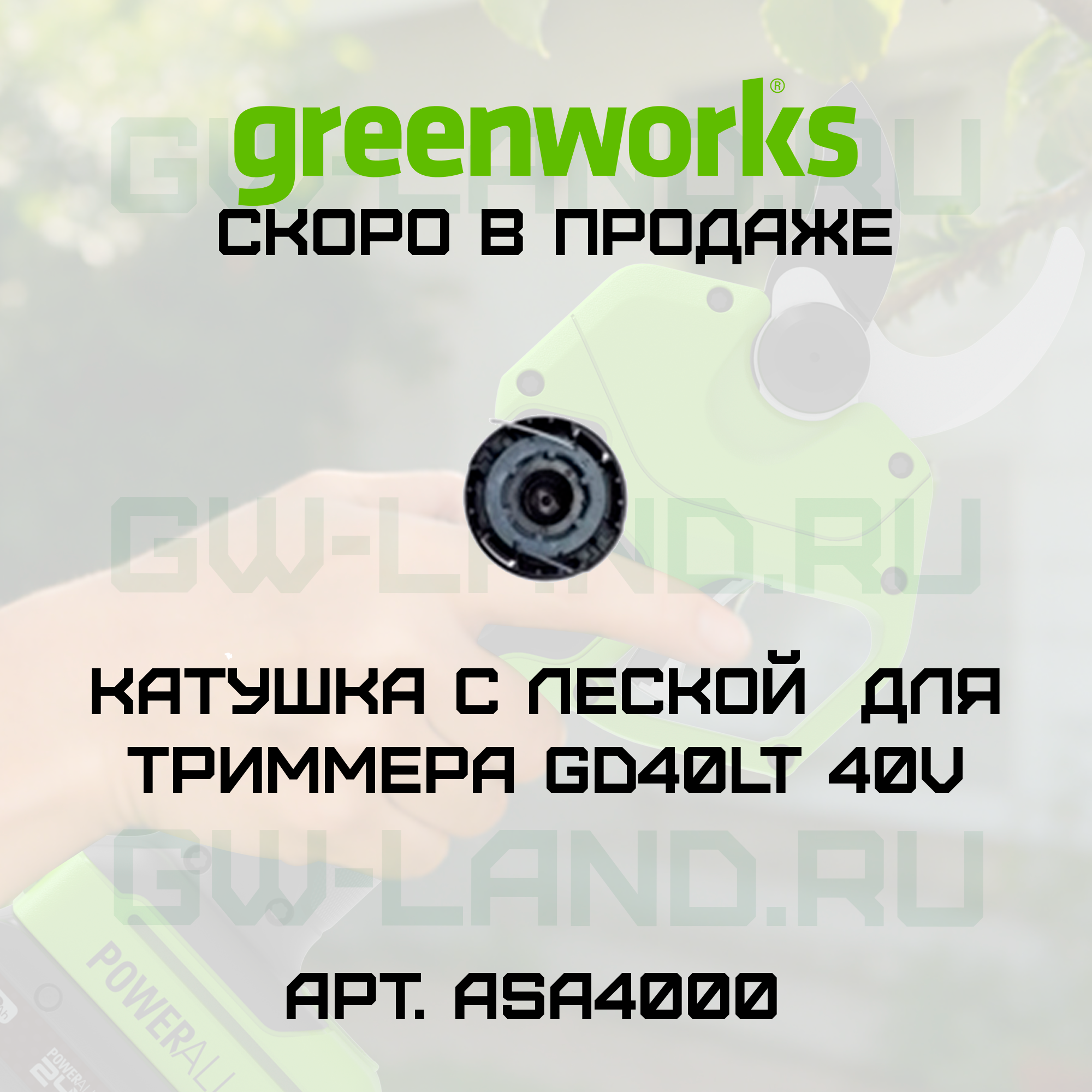 Купить Катушка с леской и крышкой триммерной головки ASA4000 Greenworks для триммера GD40LT 40V в магазине Гринворкс в Уфе можно по выгодной цене и с быстрой доставкой.
