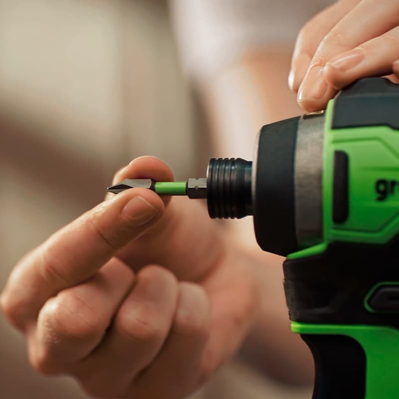 Кейс Greenworks (арт. 2944407) включает набор полезных инструментов! Внутри найдете 20 блестящих аксессуаров: мощные биты разных форм и размеров из крепкой стальной смеси S2 (хромванадий), которые идеально подходят к любым дрелям – хоть обычным, хоть ударным. А еще есть удобный магнитик для удержания всех этих мелочей внутри кейса. Помимо этого, там же лежат специальные торцовые головки размерами от 5 до 8 мм и адаптерчики на всякий случай. Всё это добро аккуратно разложено по своим местам в компактном чемоданчике зеленого цвета, который легко взять с собой куда угодно!