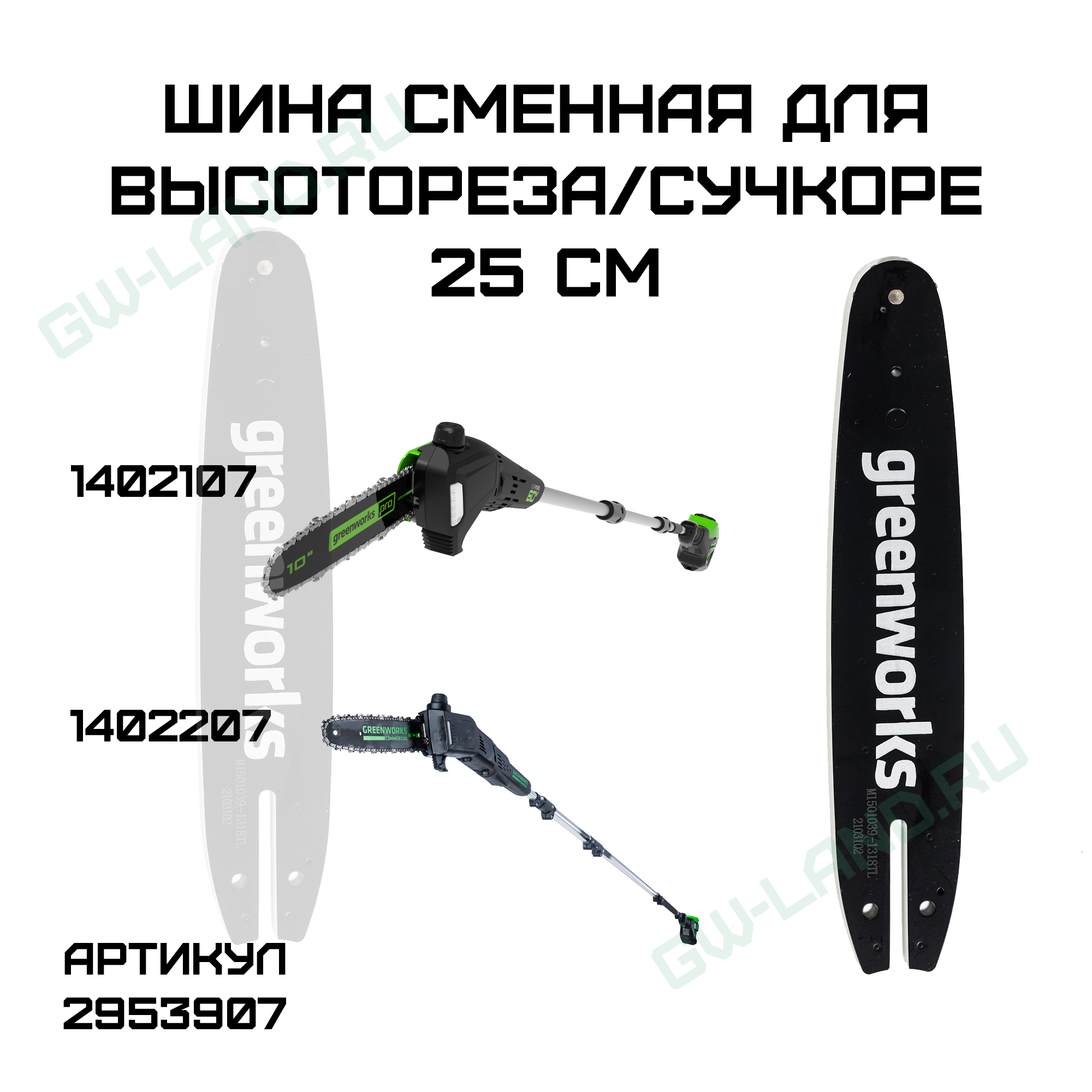 Купить Шина сменная для высотореза/сучкореза Greenworks 25 см в магазине Гринворкс в Уфе можно по выгодной цене и с быстрой доставкой.