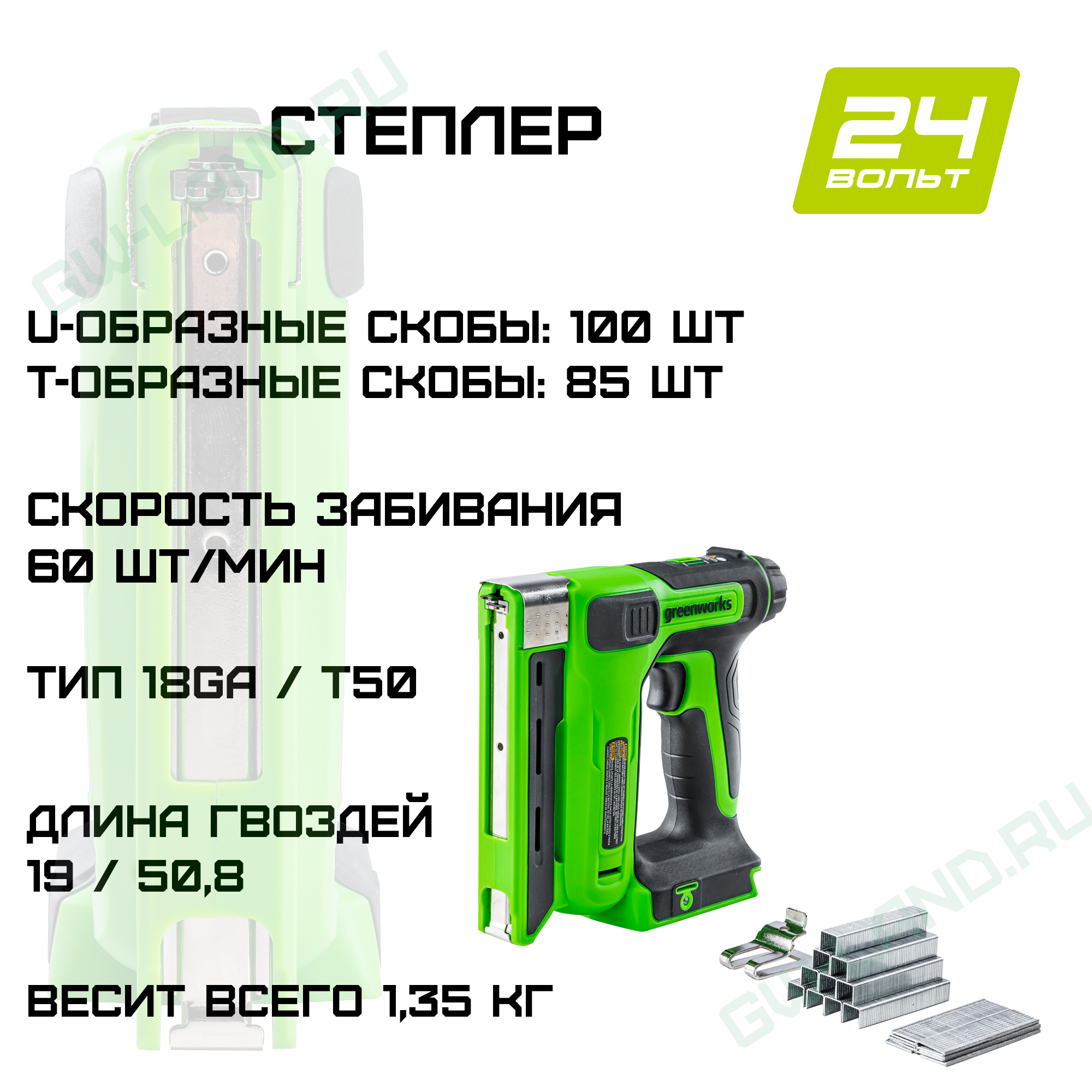 Купить Степлер Greenworks G24CS10 24В в магазине Гринворкс в Уфе можно по выгодной цене и с быстрой доставкой.