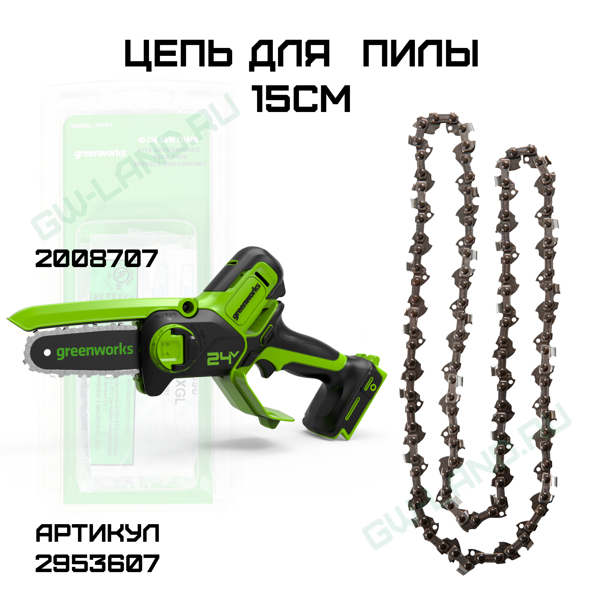 Купить Цепь для пилы Greenworks 15 см в магазине Гринворкс в Уфе можно по выгодной цене и с быстрой доставкой.