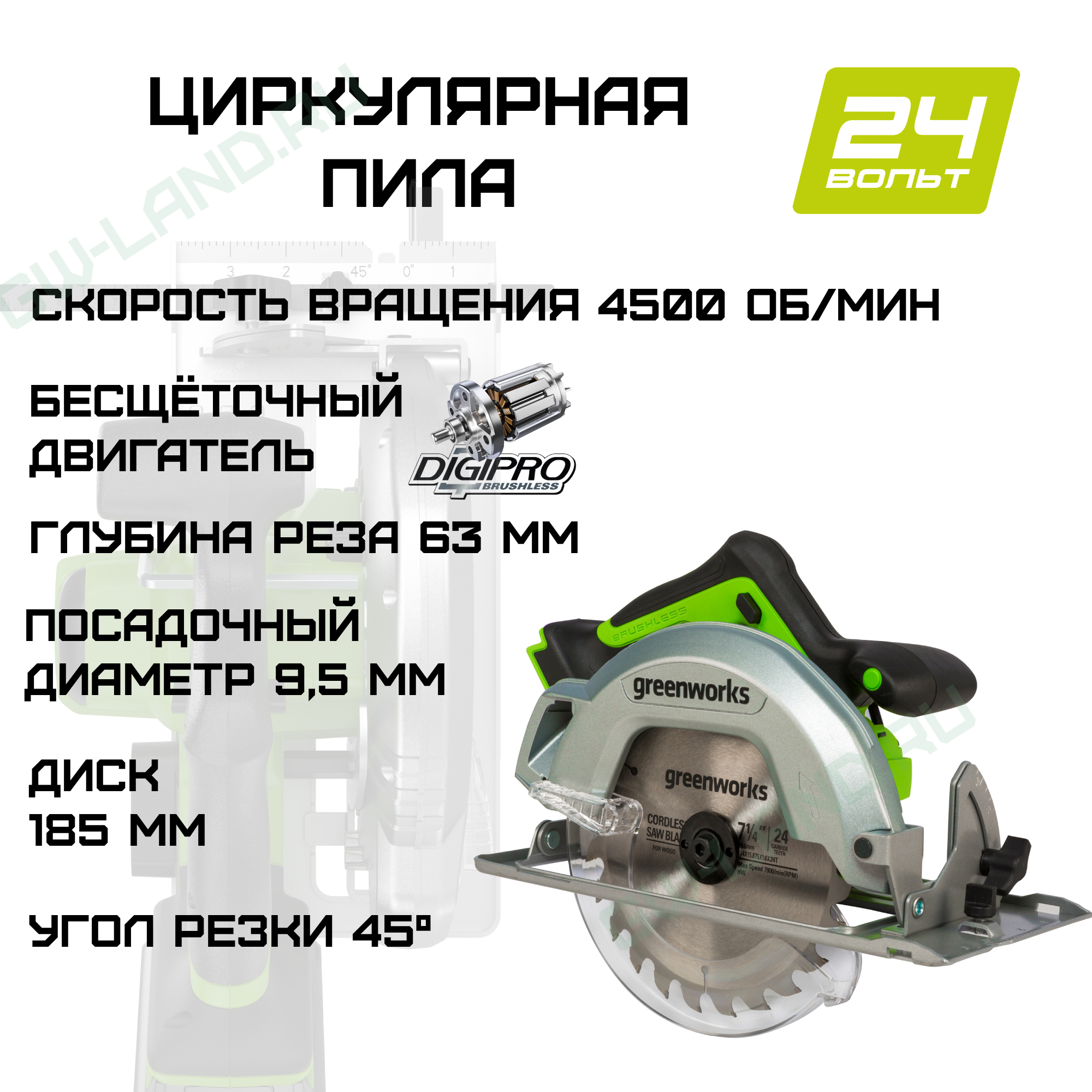 Купить Циркулярная пила Greenworks GD24CS 24V в магазине Гринворкс в Уфе можно по выгодной цене и с быстрой доставкой.